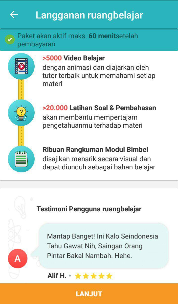 Sejauh yang aku rasakan saat berlangganan Ruangbelajar, aku mendapatkan banyak sekali fasilitas menarik, diantaranya :